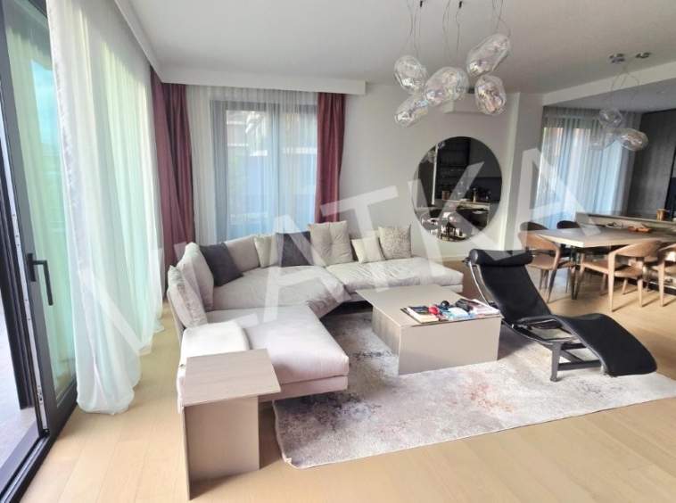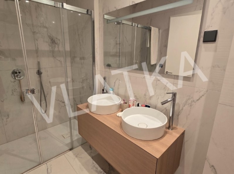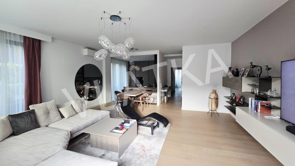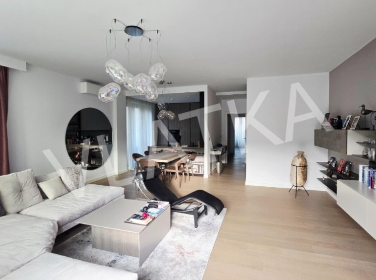 A luxuriously furnished 3-room (originally 4-room) apartment is for sale in a prime location in the new complex of VMD buildings next to the Sheraton Hotel, close to shops and public transport.
