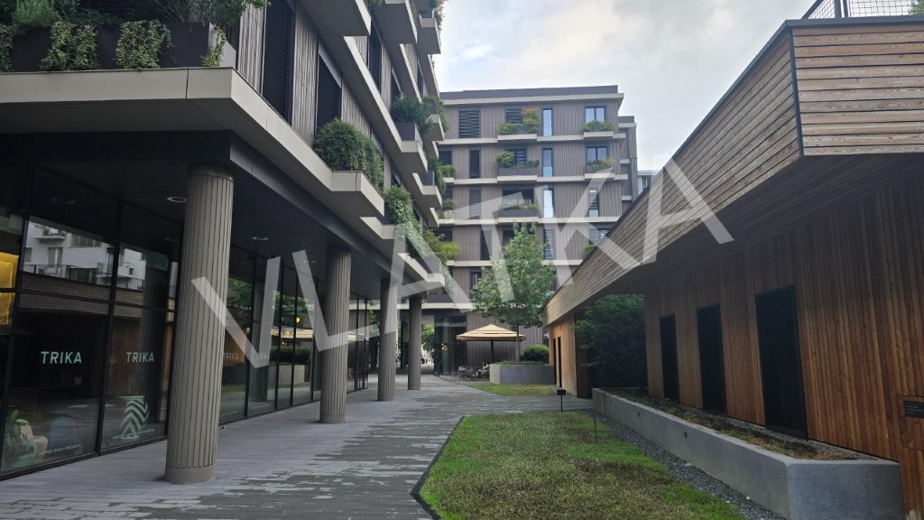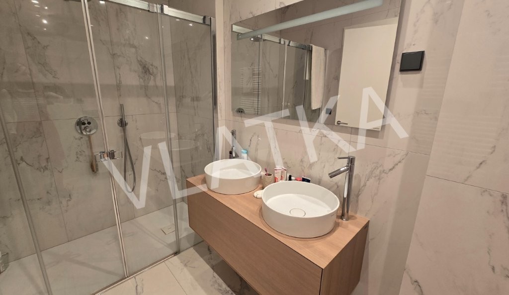 The apartment with a closed area of 106 m2 consists of: entrance hall, laundry room, kitchen, dining room, living room, 20 m2 terrace, 2 spacious bedrooms, wardrobe and 2 bathrooms.