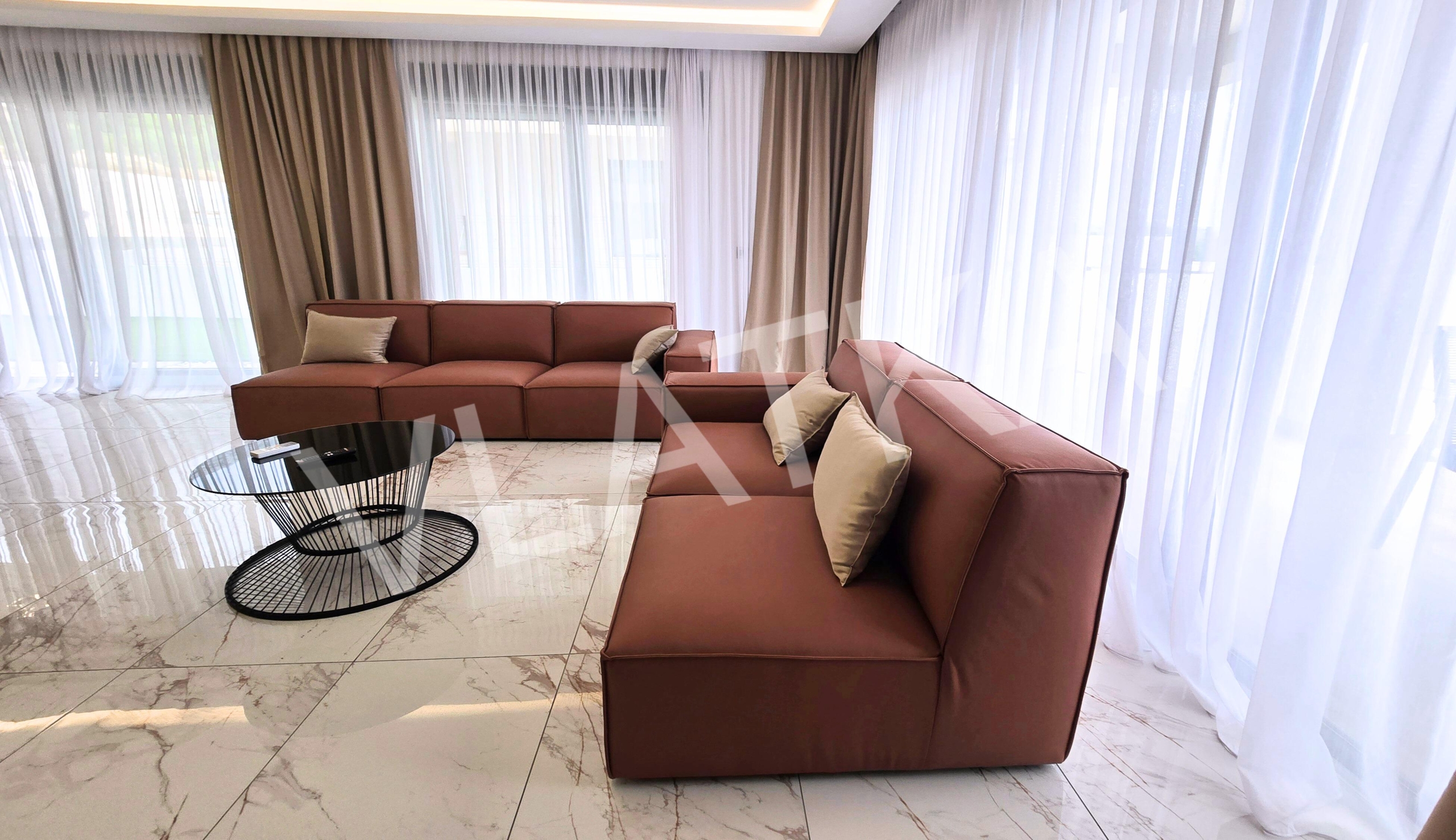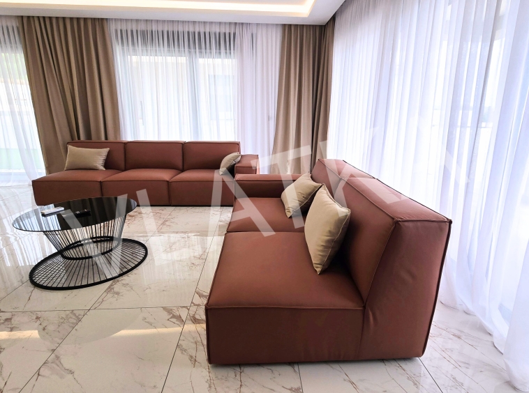 A modernly furnished house with a pool and garden is available for rent in a quiet location
