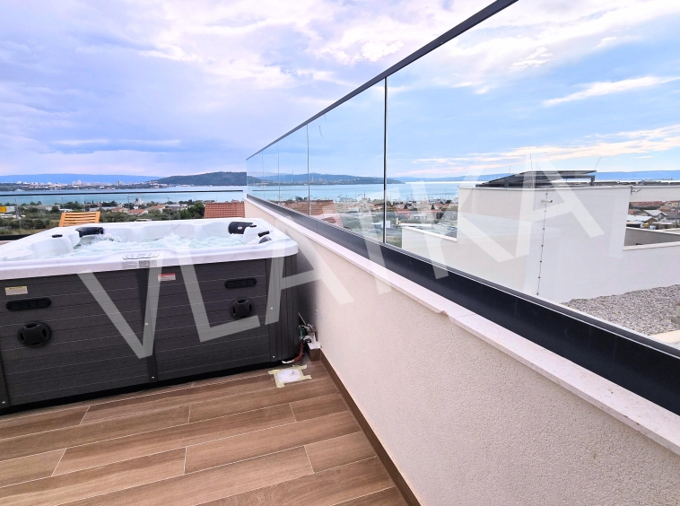 Iznajmljuje se moderno uređena kuća s bazenom i vrtom na mirnoj lokaciji u Kaštel Sućurcu, s pogledom na more.